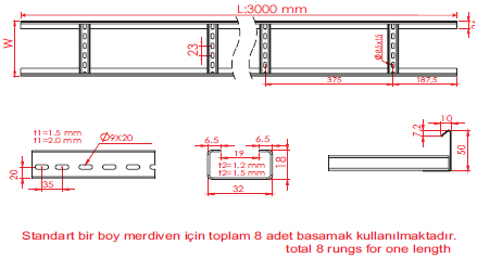 * Standard LAN cable ladder length: 3000 mm are produced. Special size can be made in bulk quantities in production. / Cable ladders are produced with standard length L: 3000mm length as well as we can produce special for your big quantities.